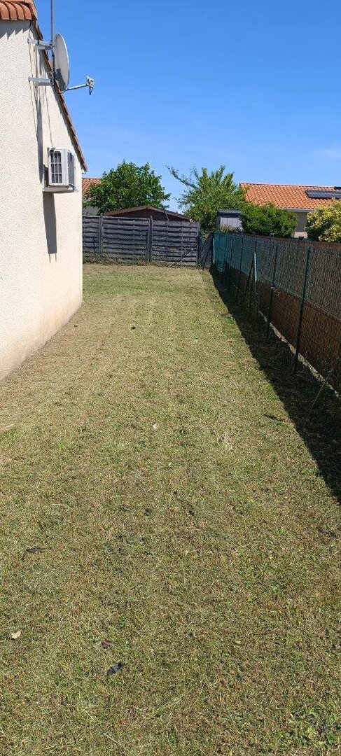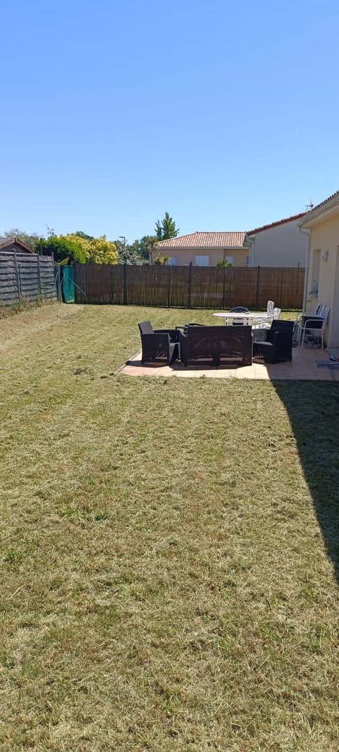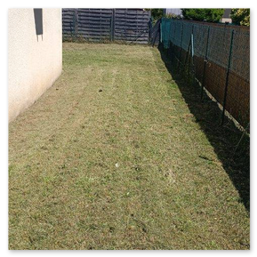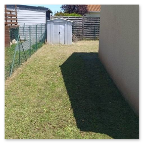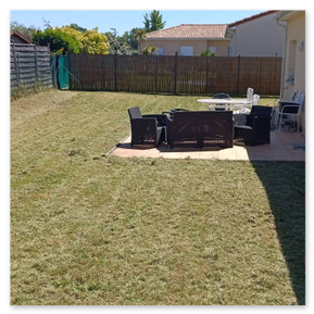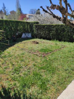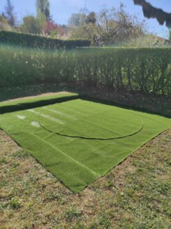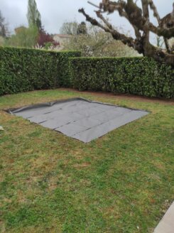 Décaissage et pose du géotextile plus sable déclassé Bâche et pour finir au gazon artificiel.