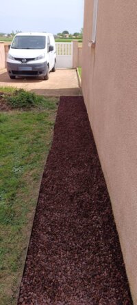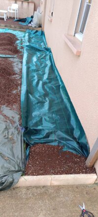 Désherbage Mise en place du géotextile Bordure + Pouzzolane